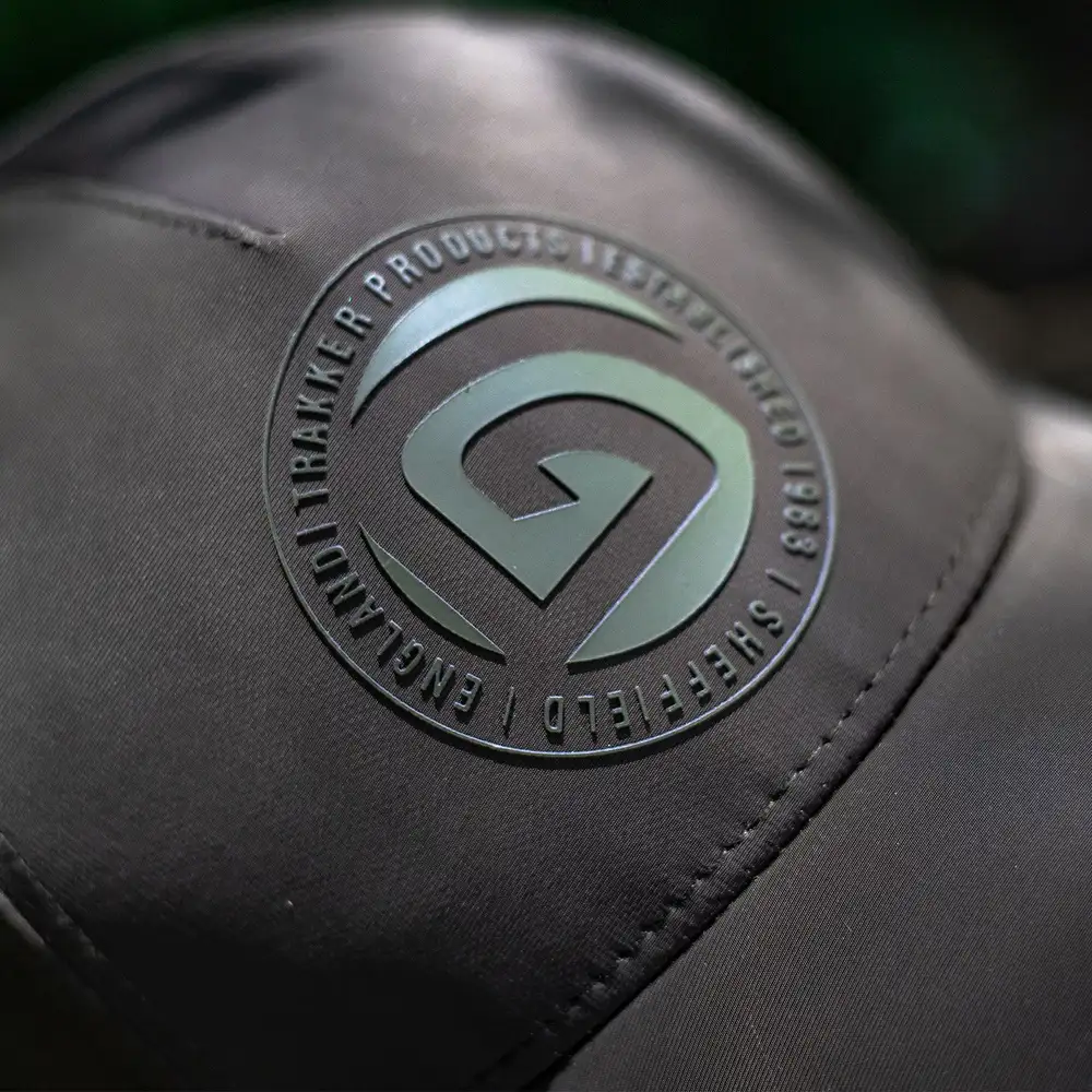 Ein wasserabweisendes Äußeres ist das Merkmal dieser Kappe von Trakker. Sie ist Trakker-grün, mit vielen Trakker-Logos verziert und ist hinten verstellbar.