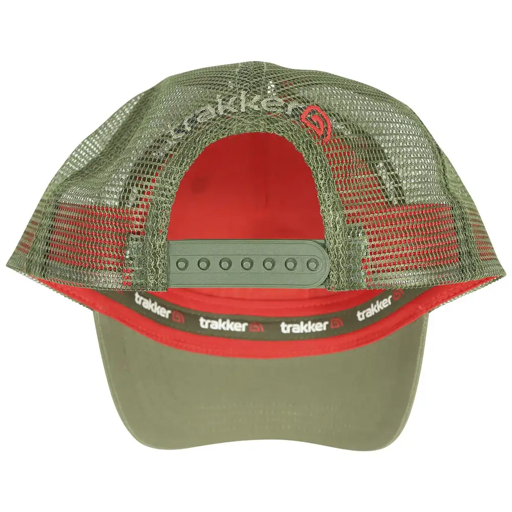 Die Trucker Mütze von Trakker besticht durch ihre grüne Farbe mit Rotem Logo Vorne und innerem Logo-Band und Schweißband. Sie ist ideal in der Sonne und schützt das Gesicht und Ihre Augen.